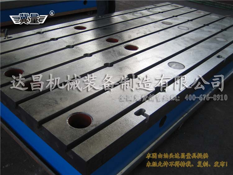 鑄鐵平臺(tái)的用途有很多,像檢驗(yàn)、劃線、焊接、裝配等等。一般檢驗(yàn)、劃線用都是用平面的鑄鐵平臺(tái),焊接、裝配用就可能需要T型槽的鑄鐵平臺(tái)了。很多客戶在購買帶T型槽的鑄鐵平臺(tái)的時(shí)候,就是看別人家買什么樣的,就想跟著買一樣的,但是這樣購買的鑄鐵T型槽平臺(tái)有時(shí)候會(huì)不適合自己用。像標(biāo)準(zhǔn)的鑄鐵T型槽平臺(tái)都是22的開口,開了四趟T型槽的,而產(chǎn)品焊接的時(shí)候,如果您用的固定螺絲是M16的,那就需要做18的T型槽開口,22的開口的臺(tái)子就不能用。如果您是根據(jù)臺(tái)面開口來買固定螺絲,那么開口做多大都沒問題了,在鑄鐵平臺(tái)上面做開口為14mm、16mm、18mm、20mm、22mm、24mm的T型槽都是可以的。有些客戶比較關(guān)注鑄鐵平臺(tái)開T型槽后T型槽的公差是多少呢?像普通機(jī)床開T型槽的時(shí)候,槽是自由公差,槽間距的誤差是±1mm的。用精密數(shù)控機(jī)床開槽的時(shí)候,T型槽直槽的精度是H8,槽間距誤差是±0.02mm的。普通機(jī)床開槽跟數(shù)控機(jī)床開槽的費(fèi)用也是不一樣的,數(shù)控開槽的費(fèi)用要高一些,如果普通機(jī)床開槽就能滿足使用需求,就不用采用數(shù)控開槽了。